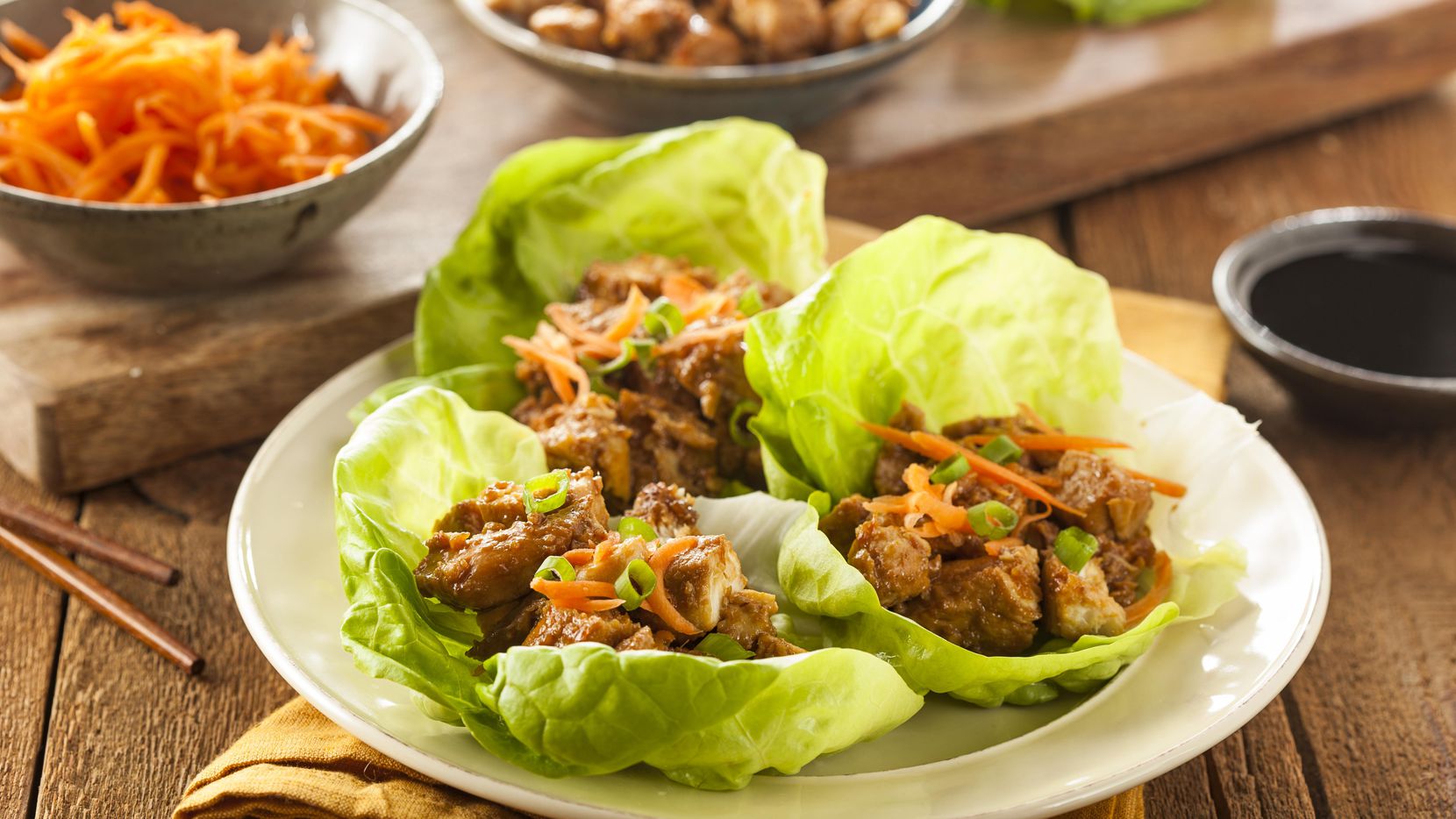 - In una ciotola media, unire il succo d’ananas, l’aglio, la salsa di soia, i fiocchi di peperoncino, lo zenzero, il miele e l’olio di sesamo. Tagliare la carne, aggiungerla alla marinata e mescolare fino a coprire, marinare per almeno 30 minuti. Scaldare una padella a fuoco medio-alto con un cucchiaio di olio di colza e trasferire metà del composto di carne in uno strato uniforme. Aggiustare di sale e cuocere fino a leggera doratura. Ripetete con l’olio e la carne rimanente, quando sarà cotta e croccante sui bordi trasferitela sulle foglie di lattuga, aggiungete un po’ di riso, erba cipollina, arachidi o quello che volete.