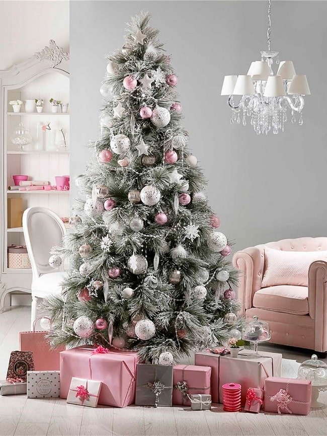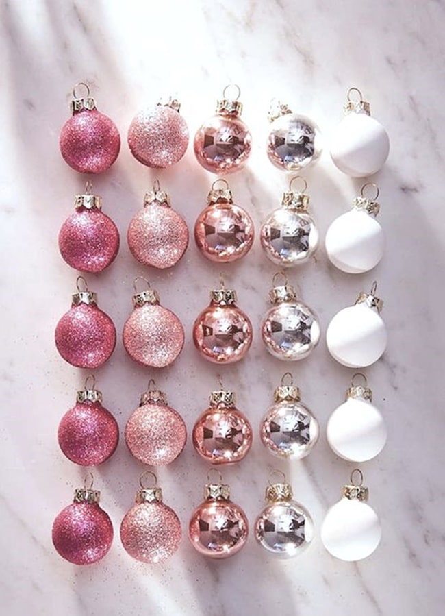 Come abbiamo accennato, forse cambiare l’albero è uno sforzo economico che non vuoi fare quest’anno (ed è completamente comprensibile), ma la buona notizia è che troverai molte opzioni per decorare quello che hai già. Immancabili le palline rosa pastello, ma anche quelle con glitter; ed è che il Natale deve brillare. Non dimenticare di abbinarli ad altri colori come il bianco, l’argento o il rame, che stanno benissimo con il rosa.
