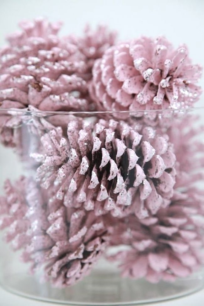 Sarebbe anche un’opzione interessante prendere molti ananas, del tipo che ci ricordano il freddo di questo periodo, e dipingerli di rosa pallido. Ideale per realizzare lavoretti di Natale con i più piccoli nel fine settimana.