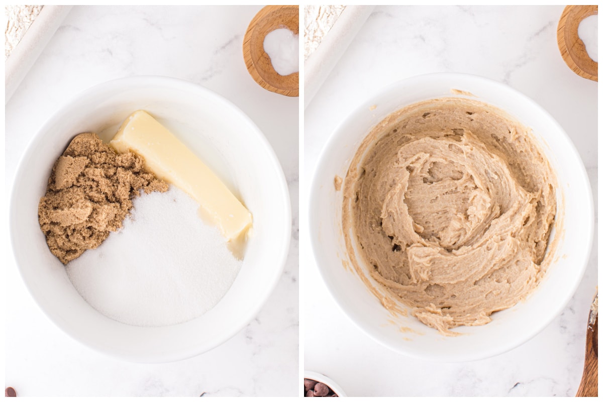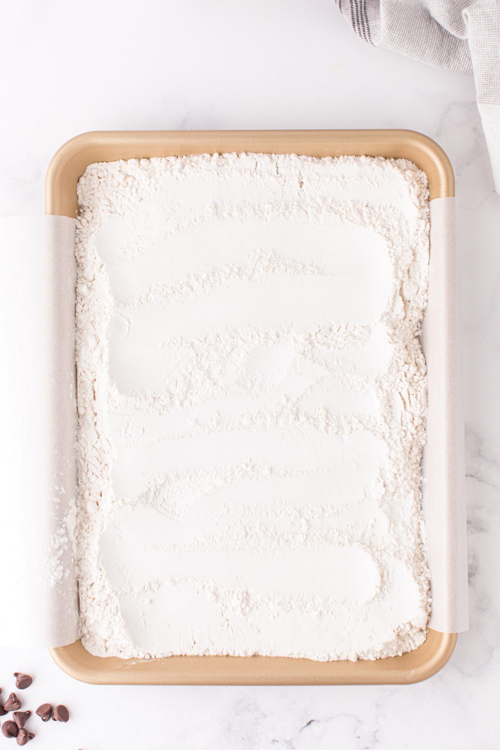 Stendere la farina sulla teglia e cuocere per 10 minuti (questo ucciderà tutti i batteri e renderà la farina sicura per il consumo “crudo”) - Mescolare insieme il burro, gli zuccheri, la vaniglia e il latte in una ciotola capiente.