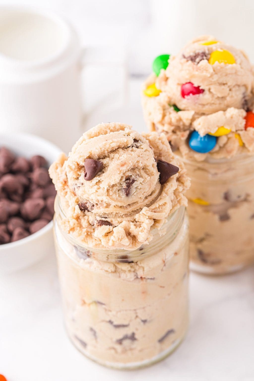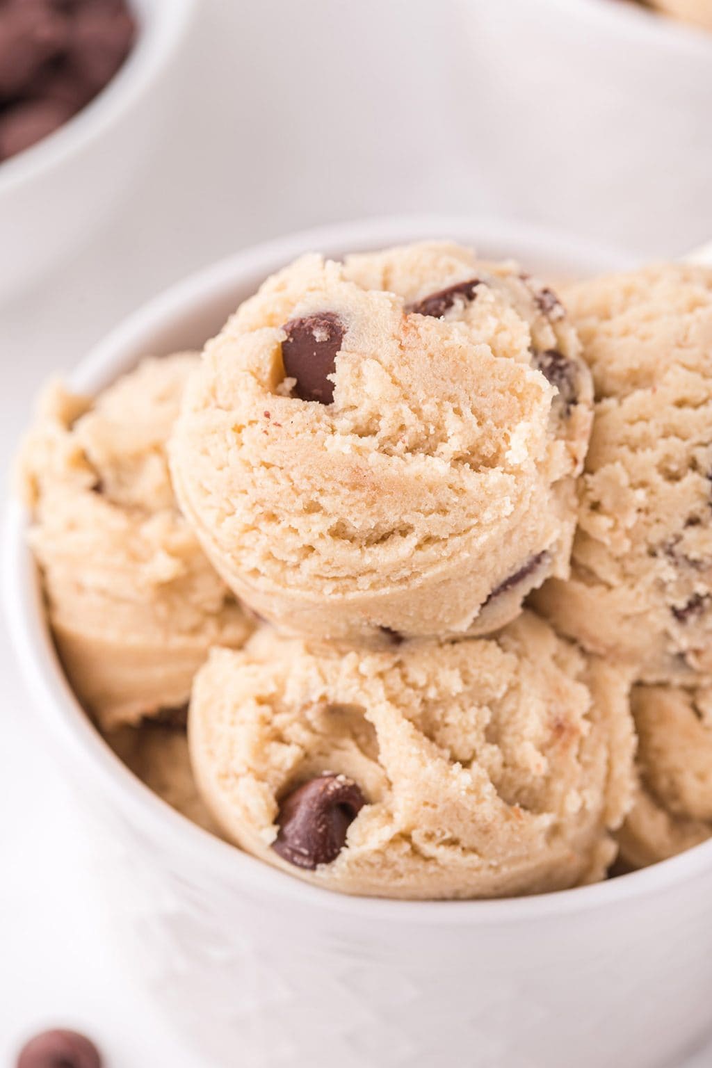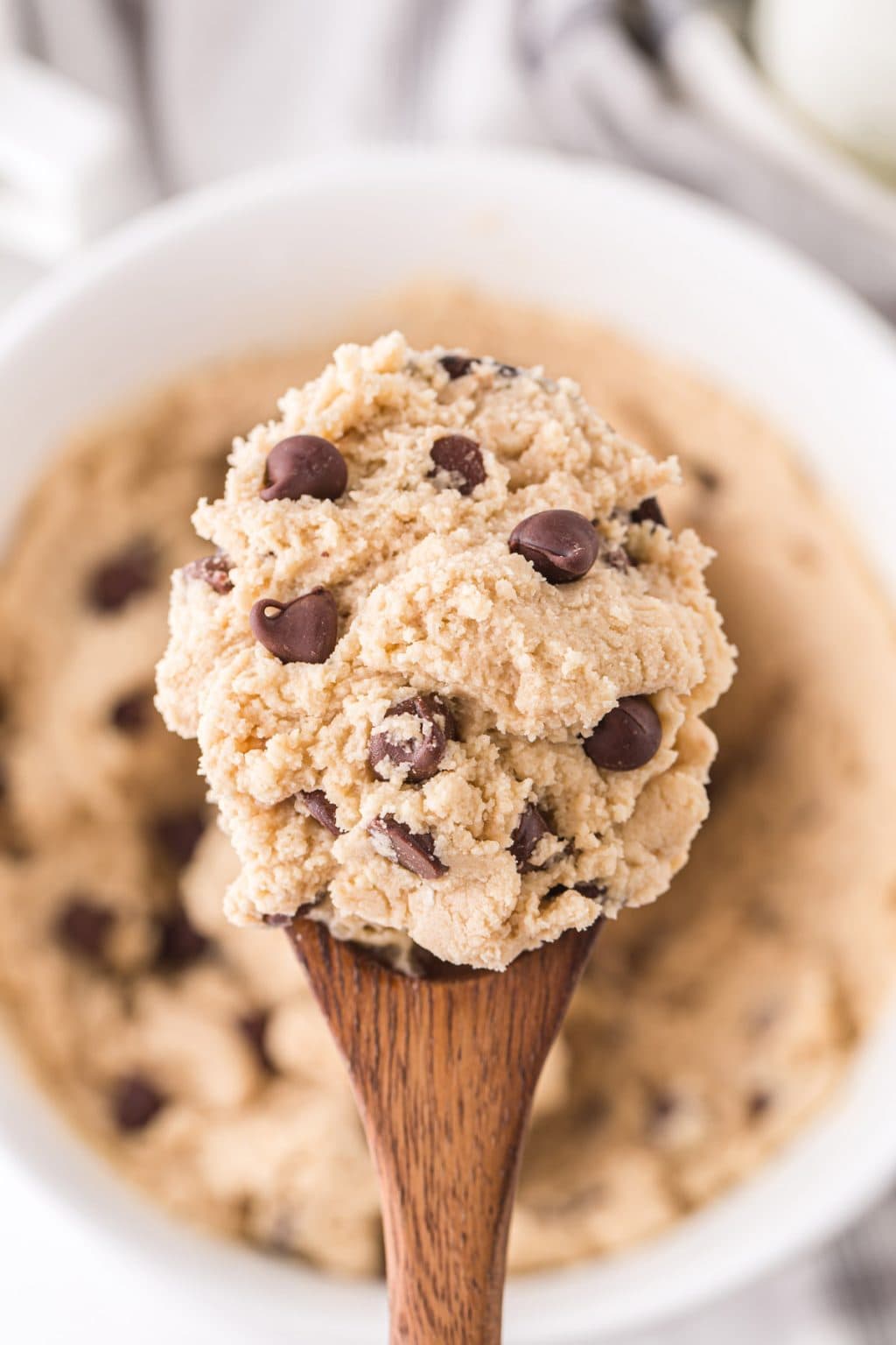ADORO mangiare la pasta biscotto perché è deliziosamente dolce e ha il sapore della vera ricetta. Ma poiché non c’è rischio di malattie di origine alimentare, puoi mangiarlo direttamente dalla ciotola senza preoccupazioni. È il miglior impasto crudo che è senza uova e fatto con farina che è stata riscaldata e trattata, con un ricco sapore burroso che mi piace anche di più dell’impasto originale per biscotti.