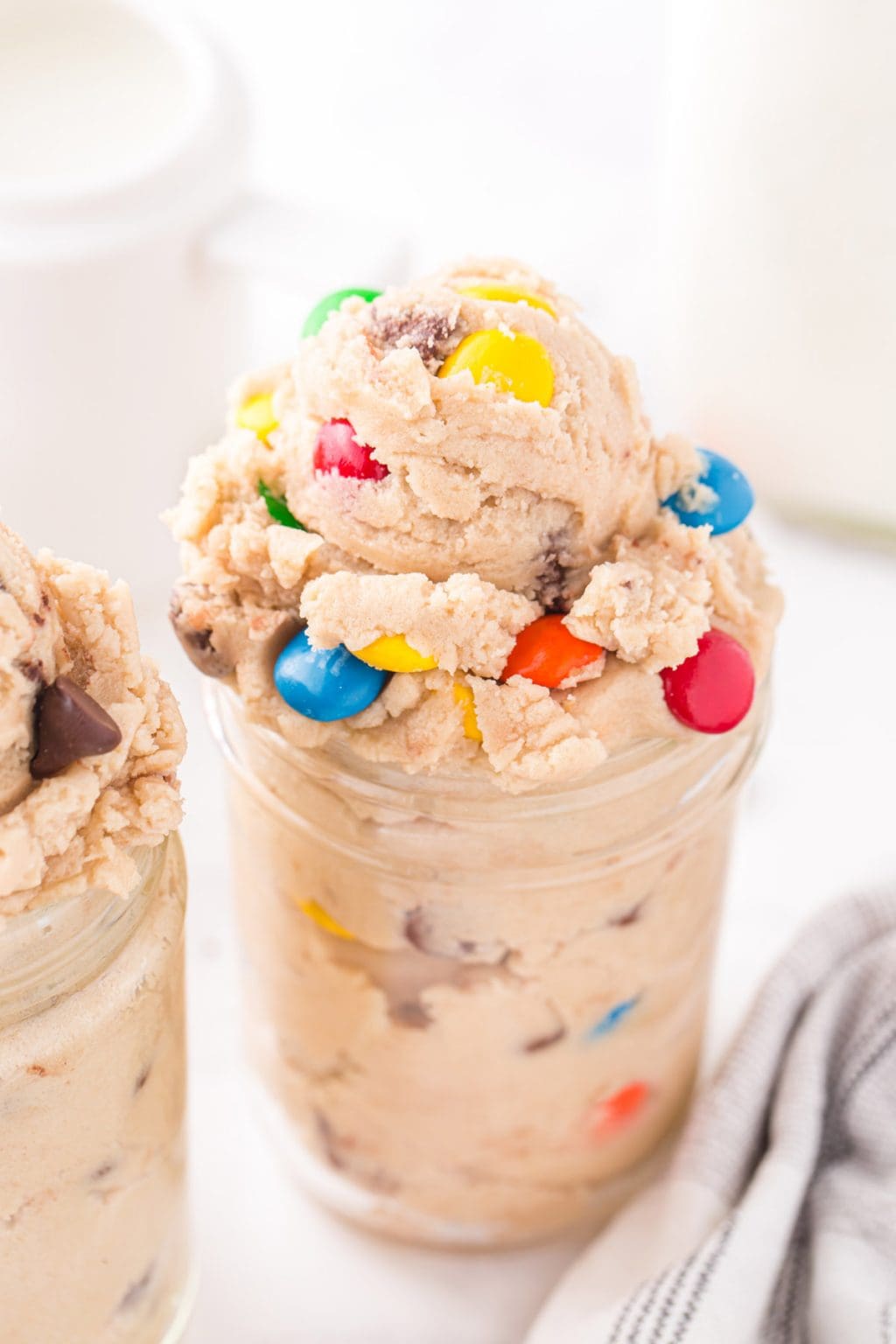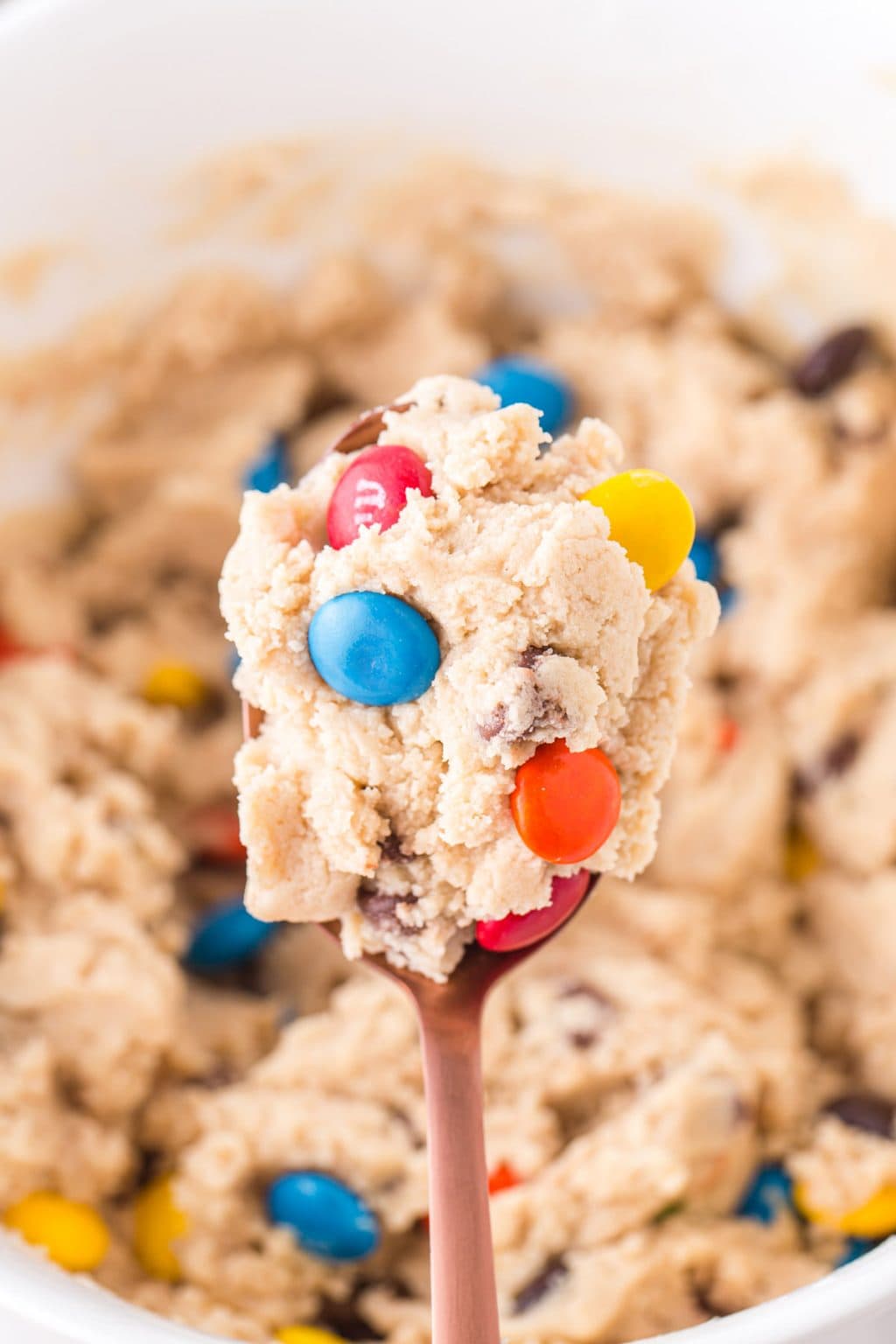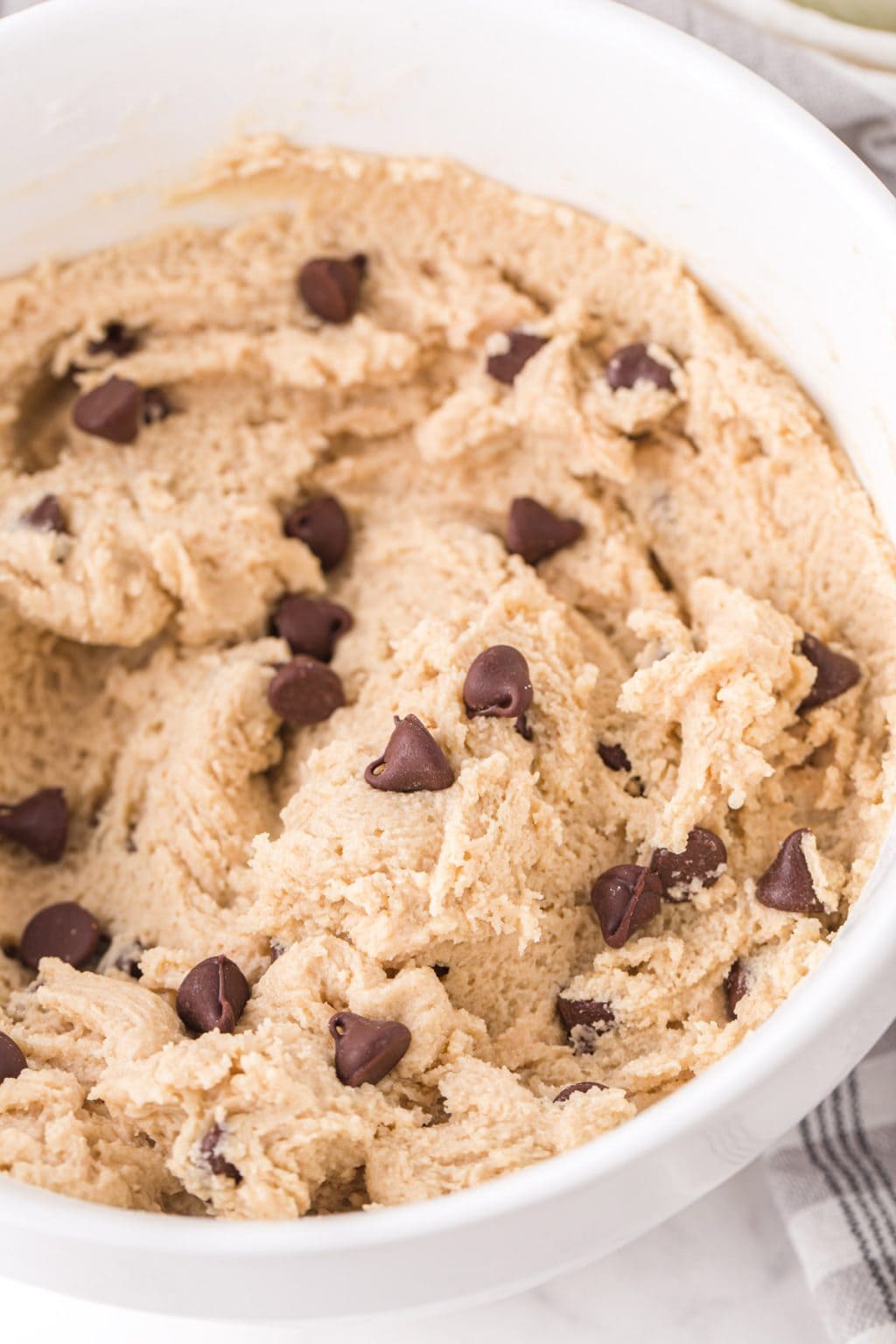 ADORO mangiare la pasta biscotto perché è deliziosamente dolce e ha il sapore della vera ricetta. Ma poiché non c’è rischio di malattie di origine alimentare, puoi mangiarlo direttamente dalla ciotola senza preoccupazioni. È il miglior impasto crudo che è senza uova e fatto con farina che è stata riscaldata e trattata, con un ricco sapore burroso che mi piace anche di più dell’impasto originale per biscotti.