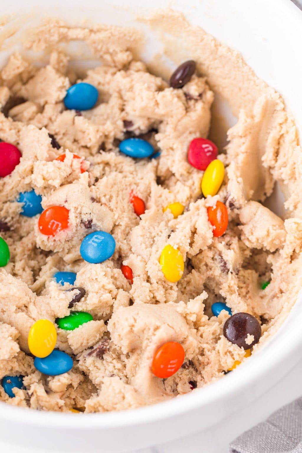 - Mescola i mix-in: sostituisci le gocce di cioccolato con granelli, briciole di Oreo, M&M, pezzi di Reese, tazze Reese’s® tritate, gocce di cioccolato bianco o caramelle tritate.