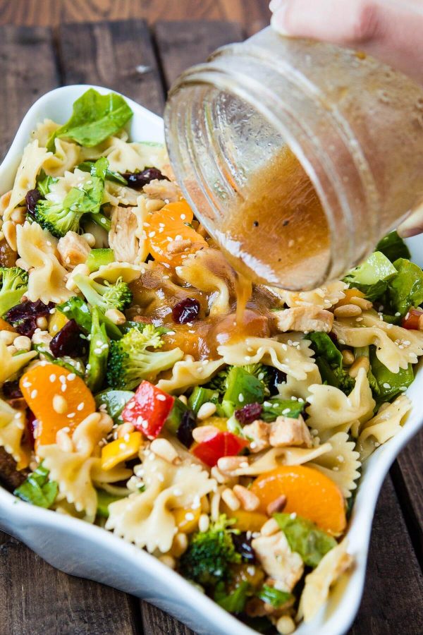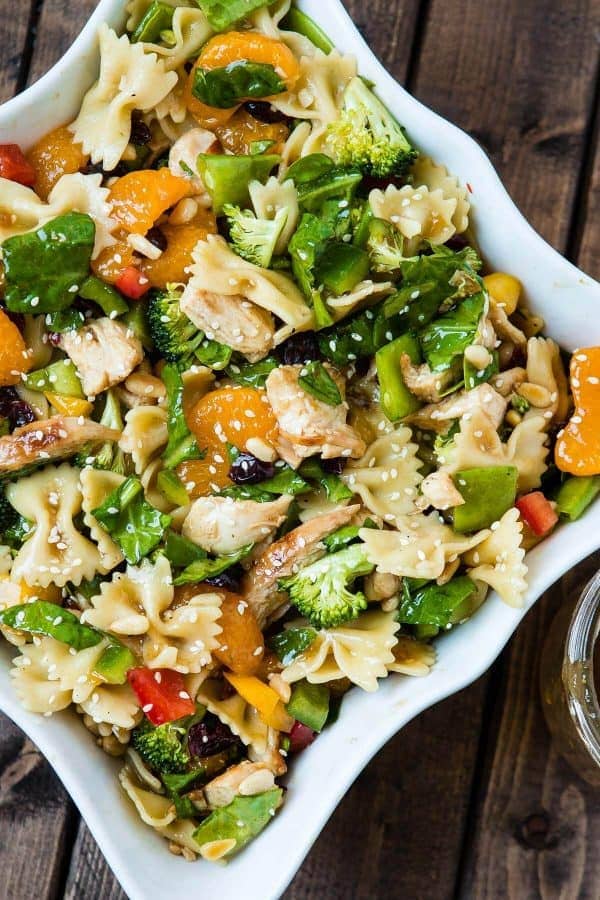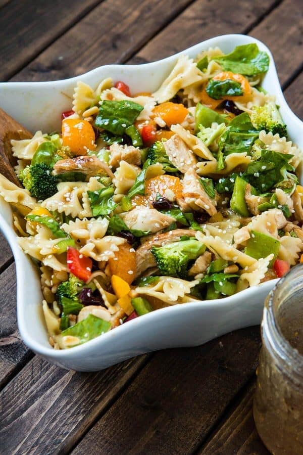 TUTTAVIA! Non sempre voglio occuparmi di tutto questo, quindi invece mi piace fare un’insalata di pasta con tutto dentro ed è un’idea per una cena in una ciotola. Avevo visto l’insalata di pasta al mandarino con spinaci con creme de la crumb con salsa teriyaki e ho deciso di fare la mia versione.