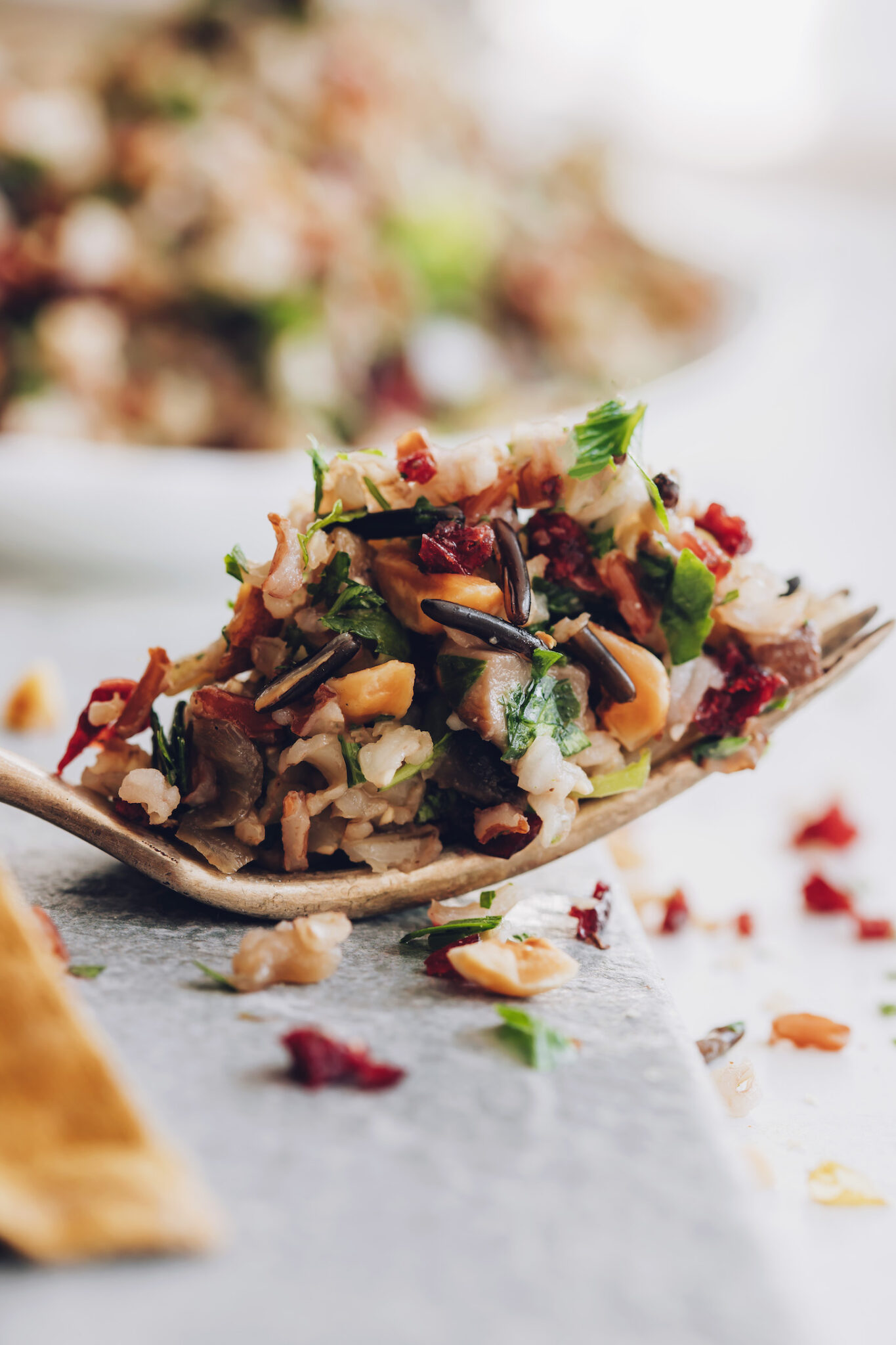 Amici, preparatevi per l’ultimo lato ricco di sapore, comfort e infuso autunnale: l’insalata di riso selvatico! Questo piatto è il nostro genere preferito: poca fatica, GRANDE ricompensa! È semplice da preparare ma non lesina sul sapore (ciao funghi, nocciole, mirtilli rossi ed erbe fresche!)