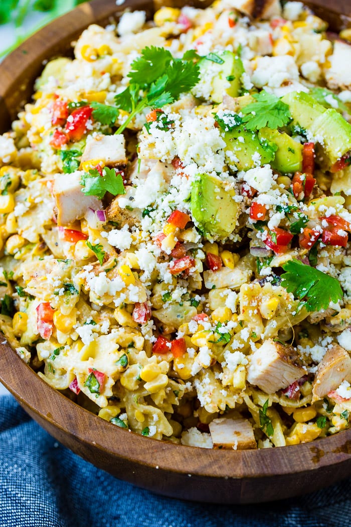 Ci sono così tante ricette di insalate di pasta là fuori, ma molte mancano di sapore. Sembra che la pasta insipida sia diventata troppo comune. Questa insalata messicana di pasta di mais alla griglia con pollo è piena di sapore, consistenza e molti carboidrati. Cito solo i carboidrati perché sappiamo tutti che i carboidrati fanno girare il mondo.