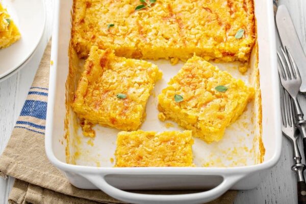 - Infornare: versare l’impasto di mais in casseruola nel piatto preparato e cuocere per 45-50 minuti. La vostra casseruola è pronta quando il centro non è più tremolante e la parte superiore è dorata.