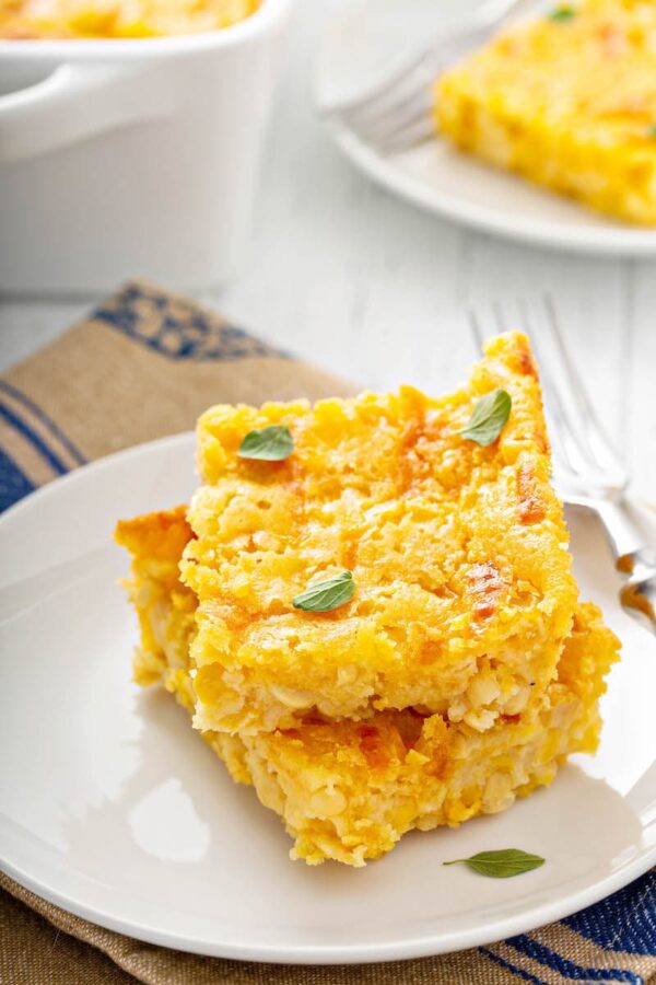 Questa teglia di mais, o budino di mais a seconda di dove vieni, è un contorno assolutamente delizioso.