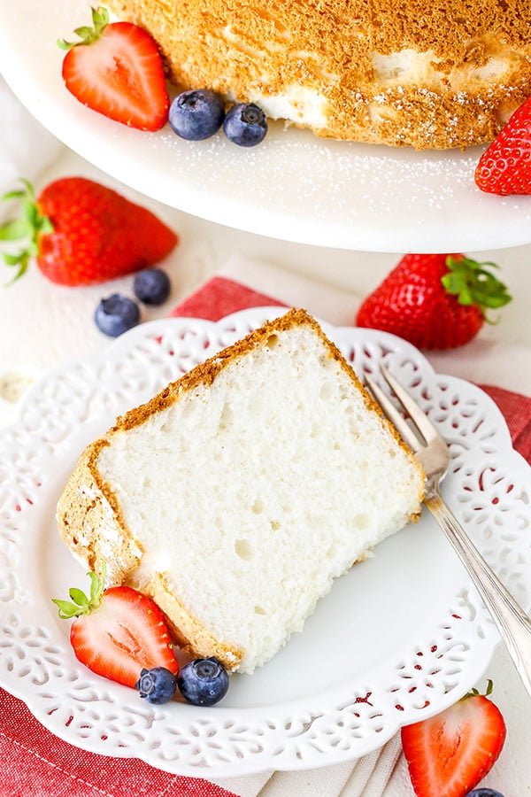 Albumi d’uovo – Questa torta non utilizza agenti lievitanti per aiutarla a lievitare. Tutto l’aumento viene dall’aria montata negli albumi, quindi è un passo super importante. Vuoi assicurarti di usare albumi freschi che siano al 100% privi di tuorlo d’uovo. Qualsiasi tuorlo rimasto nei bianchi può influenzare la loro capacità di frustare correttamente. È meglio separare i bianchi in una ciotola separata prima di aggiungerli con il resto dei bianchi. In questo modo non sprecherai tutti gli albumi se parte del tuorlo si fa strada nell’albume. Potresti anche pulire la ciotola e gli utensili con succo di limone per assicurarti che siano privi di grasso, che può anche influenzare la frustatura degli albumi.