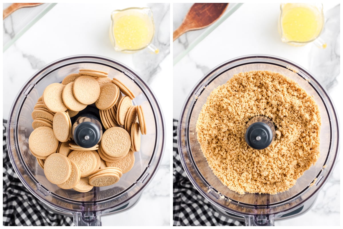 - Frullare i biscotti Oreo fino a quando non assomigliano a una mollica fine.