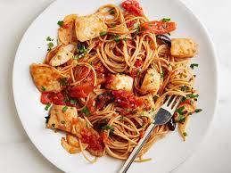 Pelate la melanzane, lavate la zucchina e tagliate entrambe a dadini. Lavate i pomodorini e tagliateli a metà. Pelate e affettate finemente gli spicchi d’aglio. Salate e pepate i filetti di pesce. Cuocete al dente le linguine in abbondante acqua salata. Scaldate metà dell’olio in una padella e rosolate per qualche minuto le verdure a dadini e l’aglio. Sfumate con il vino, aggiungete i pomodorini e insaporite con il sale, pepe e origano. Coprite e proseguite la cottura a fuoco lento per qualche minuto. Rosolate u filetti di pesce nell’olio rimasto facendoli dorare 1 minuto per parte. Scolate le linguine, conditele con il sugo alle verdure e distribuitele nei piatti individuali. Mettete un filetto di pesce sopra ogni porzione se lo desiderate e servite in tavola.