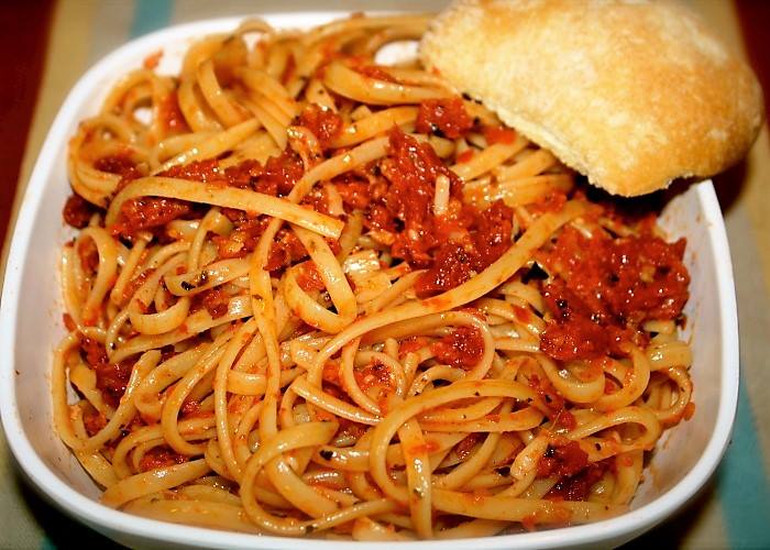 Linguine cu sucu i pimmaduari sicchi