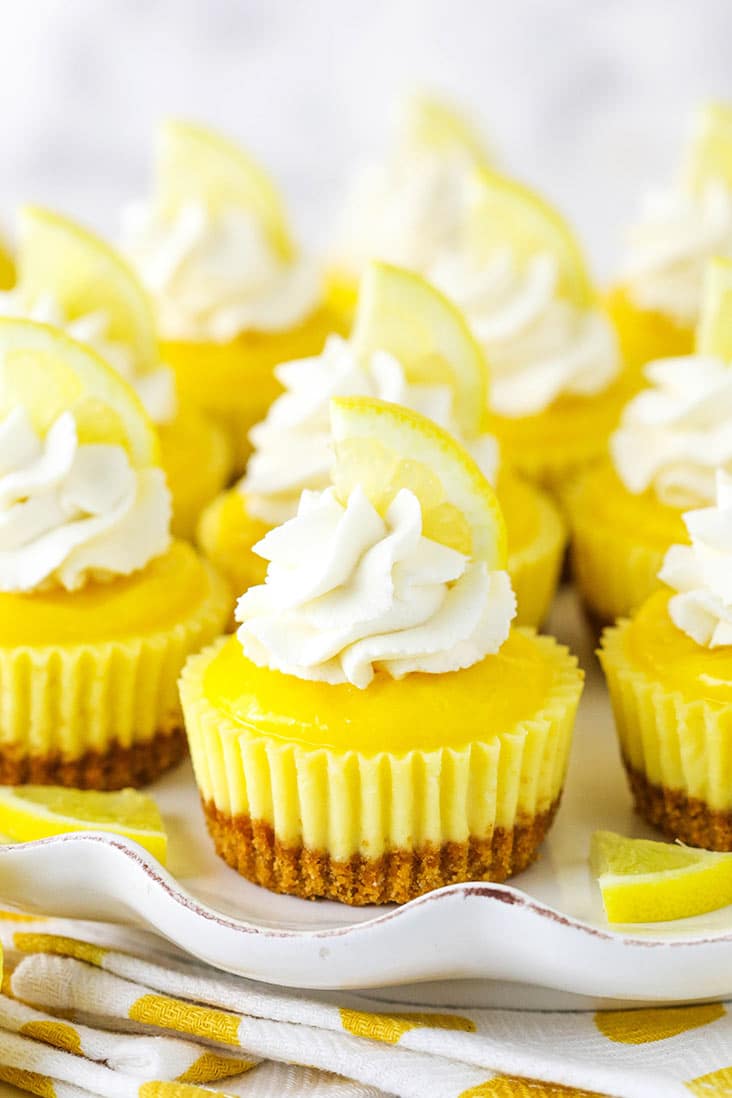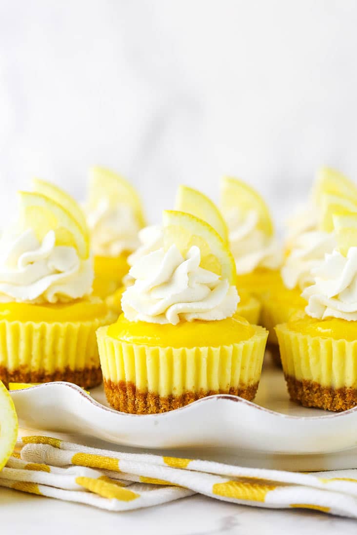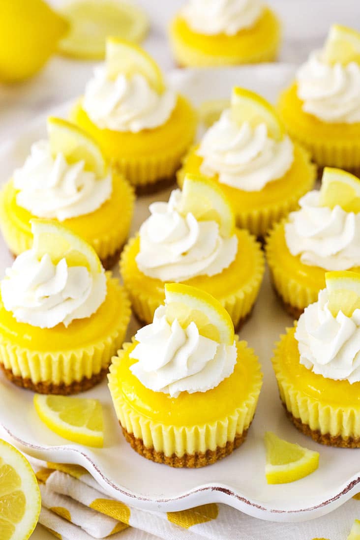 Queste mini-cheesecake sono ricche di sapore di limone, che le rende rinfrescanti e perfette per l’estate. Se ami il limone, AMERAI queste. Sono fatte con succo di limone e scorza di limone nel ripieno, più tuorli d’uovo al posto di uova intere che amplificano effettivamente i sapori del limone. E poi, per finire, c’è una deliziosa guarnizione di crema al limone!