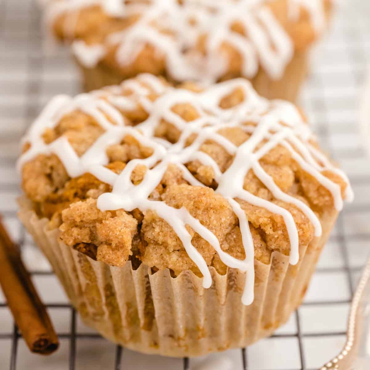Successivamente, viene la guarnizione di briciole. Questo ripieno di briciole fatto in casa è semplice e rifinisce i muffin nel modo giusto. Infine, farai una glassa fatta in casa, usando solo due ingredienti, ed è il tocco finale dolce e cremoso perfetto per questi muffin già perfetti.