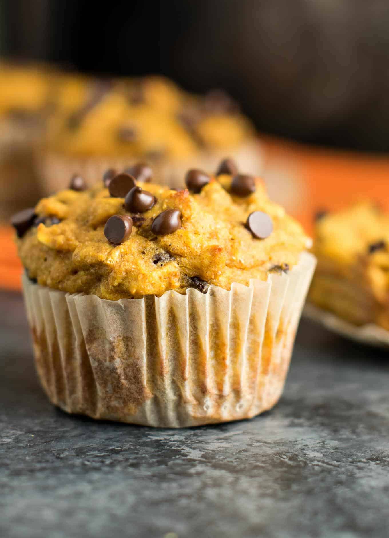 Tagliate la zucca a fette e fatela cuocere in forno per 15 minuti a 200°C. In una terrina lavorate il burro a crema aggiungendo gradualmente lo zucchero di canna. Sbattete a parte l’uovo con la vanillina e incorporatelo al composto di burro, aggiungete la farina, setacciata con il cacao e il sale, alternando con il latte. Imburrate gli stampini, riempite il fondo con il composto, mettete al centro 1 cucchiaino di cioccolato a scaglie e dadini di zucca. Coprite con altro impasto e infornate a 190°C per 20 minuti.