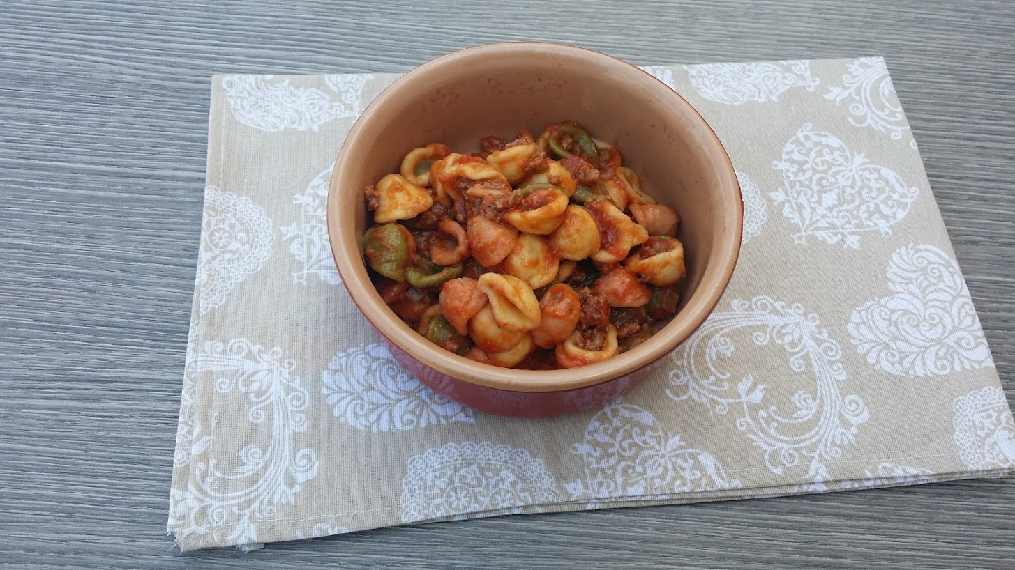 Pulite e tagliate a pezzetti piccoli la cipolla. Fatela soffriggere velocemente nell’olio di oliva. Aggiungete la carne macinata e soffriggete anch’essa. Io amo realizzare con un pò di macinato anche delle polpettine, ma è una vostra libera scelta. Aggiungete il bicchiere di vino rosso e fate insaporire. Unite la salsa di pomodoro, salate e fate cuocere per qualche minuto. Allungate con un bicchiere d’acqua e fate cuocere a fuoco basso finchè il sugo sarà ristretto. Cuocete la pasta al dente, quindi scolate e condite con il sugo. Ottimo anche come piatto unico.