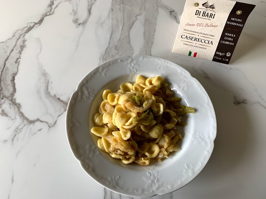 Per la realizzazione di questa ricetta ho usato come ingrediente principale: le orecchiette caserecce di pasta di semola di grano duro tradizionali di grano 100% italiano essiccate lentamente del Pastificio di Bari Taralloro.
