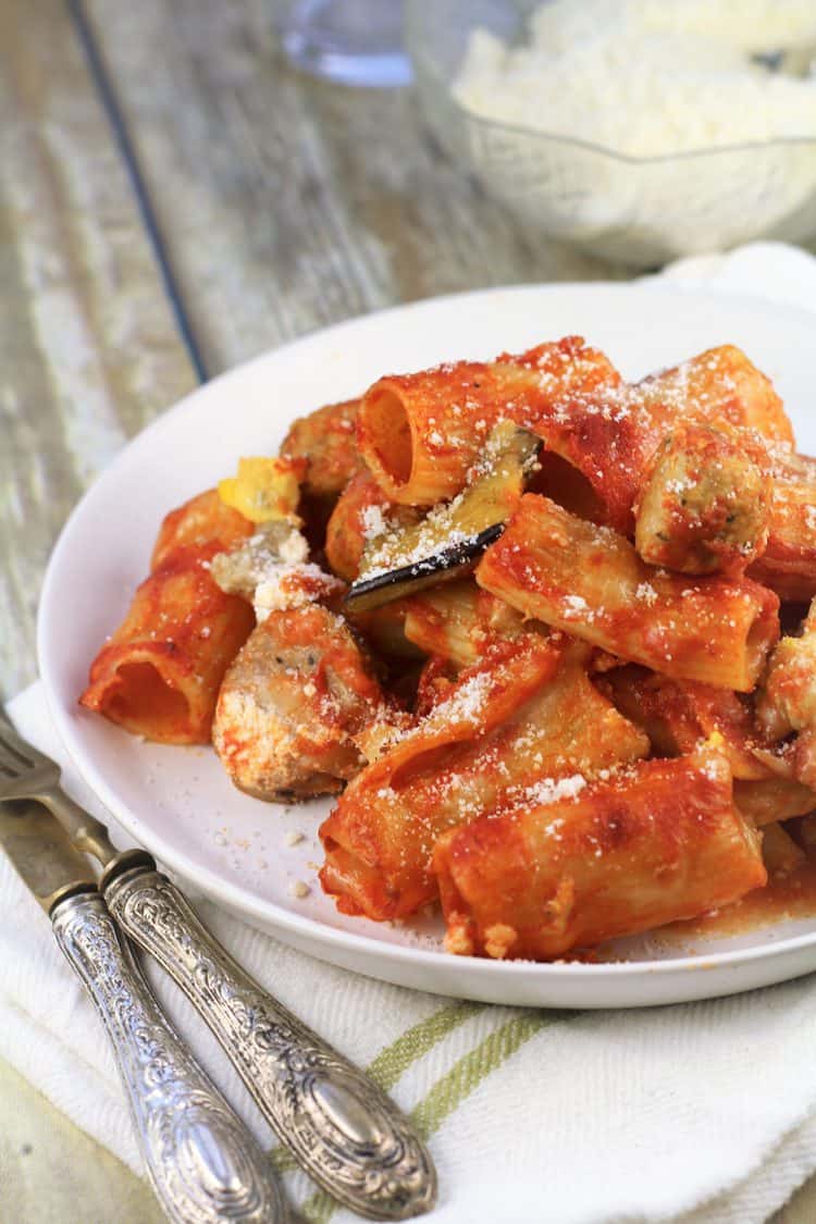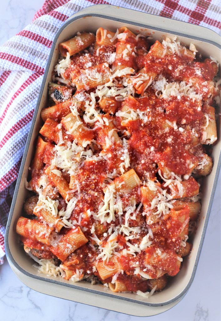 In generale qualsiasi formato di pasta di media lunghezza come i rigatoni (la mia prima scelta); penne; fusilli o rotini sono ideali per fare la pasta al forno. Queste forme sono perfette per “catturare” la salsa, i formaggi e gli altri ingredienti di questo piatto.