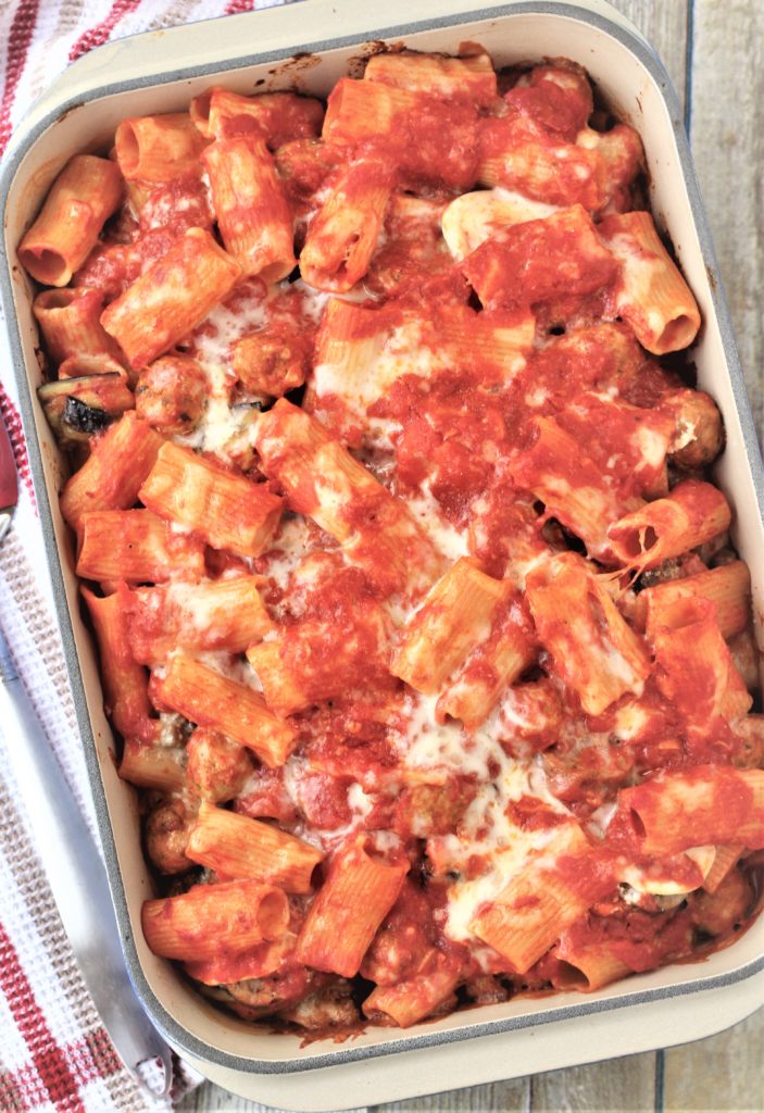 E infine, un piatto di pasta al forno non sarebbe completo senza piccole polpette sparse nel piatto.