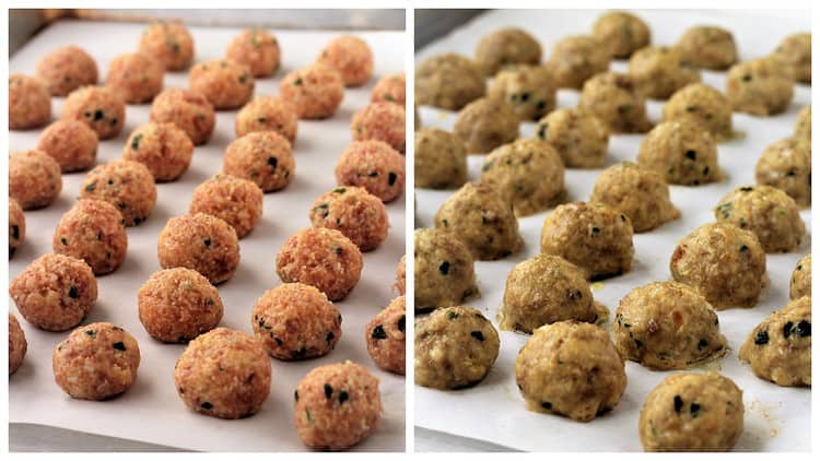 - Formate delle palline grandi quanto un cucchiaino e sistematele su una teglia ricoperta di carta da forno. Cuocere per 10 minuti, fino a quando non saranno leggermente dorati.