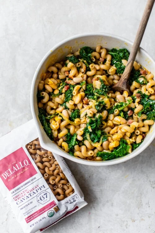 - Pasta: ho collaborato con DeLallo per realizzare questa ricetta di pasta. Le loro penne integrali erano la scelta perfetta, ma si poteva usare davvero qualsiasi forma, come le conchiglie, i fusilli o i cavatappi.