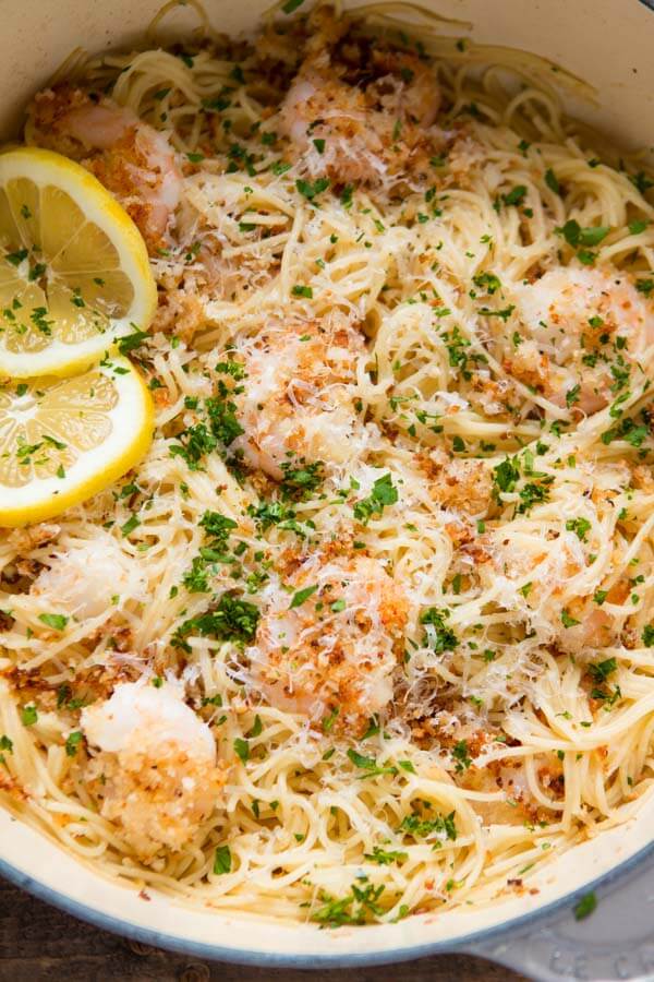 Se c’è una cosa che so, è che le persone adorano la loro pasta con gamberi, ma questa pasta con scampi e gamberetti al parmigiano impanata in pentola la porta a un livello completamente nuovo.