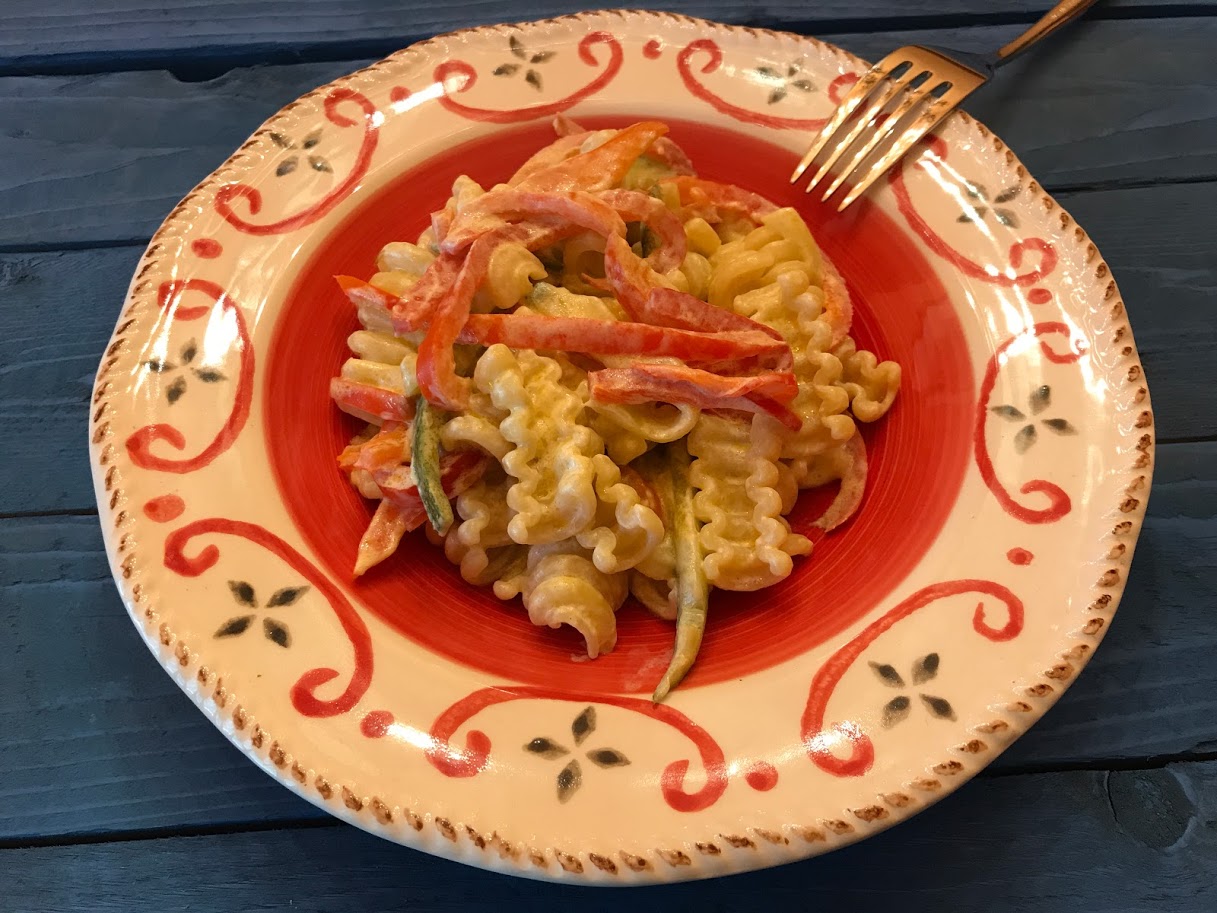 Tante volte abbiamo dei semplici ingredienti ma abbiamo paura ad usarli tutti insieme, è il caso della panna per cucinare che evitiamo di usarla perché appesantisce i sapori; in realtà se la accostiamo ad altrettanti sapori forti è un fantastico alleato del gusto. Per la realizzazione di questa ricetta ho deciso che oltre ad essere gustoso, questo piatto doveva risultare bello anche alla vista, quindi ho deciso di scegliere delle verdure colorate per dargli quel tocco estivo e quel senso di freschezza! Quindi ho scelto il rosso del peperone come il tramonto sul mare e il verde della zucchina che associo sempre all’estate. Voi potete scegliere qualsiasi verdura preferite, aggiungendoci come ho fatto io la panna da cucina Parmalat. La pasta che ho scelto di realizzare è un primo piatto molto gustoso e facile da preparare. È ottima da preparare se si hanno ospiti all’improvviso, per un semplice pranzo o cena in famiglia. È un piatto diverso dal solito. Come ingredienti principali ho scelto le zucchine, i peperoni rossi e la panna da cucina. È ottima anche il giorno dopo riscaldata un po’ al forno con una spruzzata di formaggio grattugiato o in microonde. Può essere gustata sia calda che fredda. Se la si vuole gustare calda, consiglio di riscaldarla al forno con una spruzzata di formaggio grattugiato con la crosticina croccante, che vi farà leccare i baffi! Invece se la si vuole gustare fredda va bene anche tipo insalata di pasta, basta metterci un filo di olio, appena scolata, per evitare che si attacchi. È ottima da portare anche al mare o in montagna per una scampagnata. È un piatto molto veloce e bastano solamente una ventina di minuti per assaporarla. È ottima anche da far mangiare ai vostri bambini, se come tutti i bambini non mangiano verdure, ma in questo piatto sono nascoste e in più grazie alla panna la troveranno ancora più gustosa. La pasta con le zucchine, i peperoni rossi e la panna è un piatto che sicuramente non potrà mancare nelle vostre serate estive