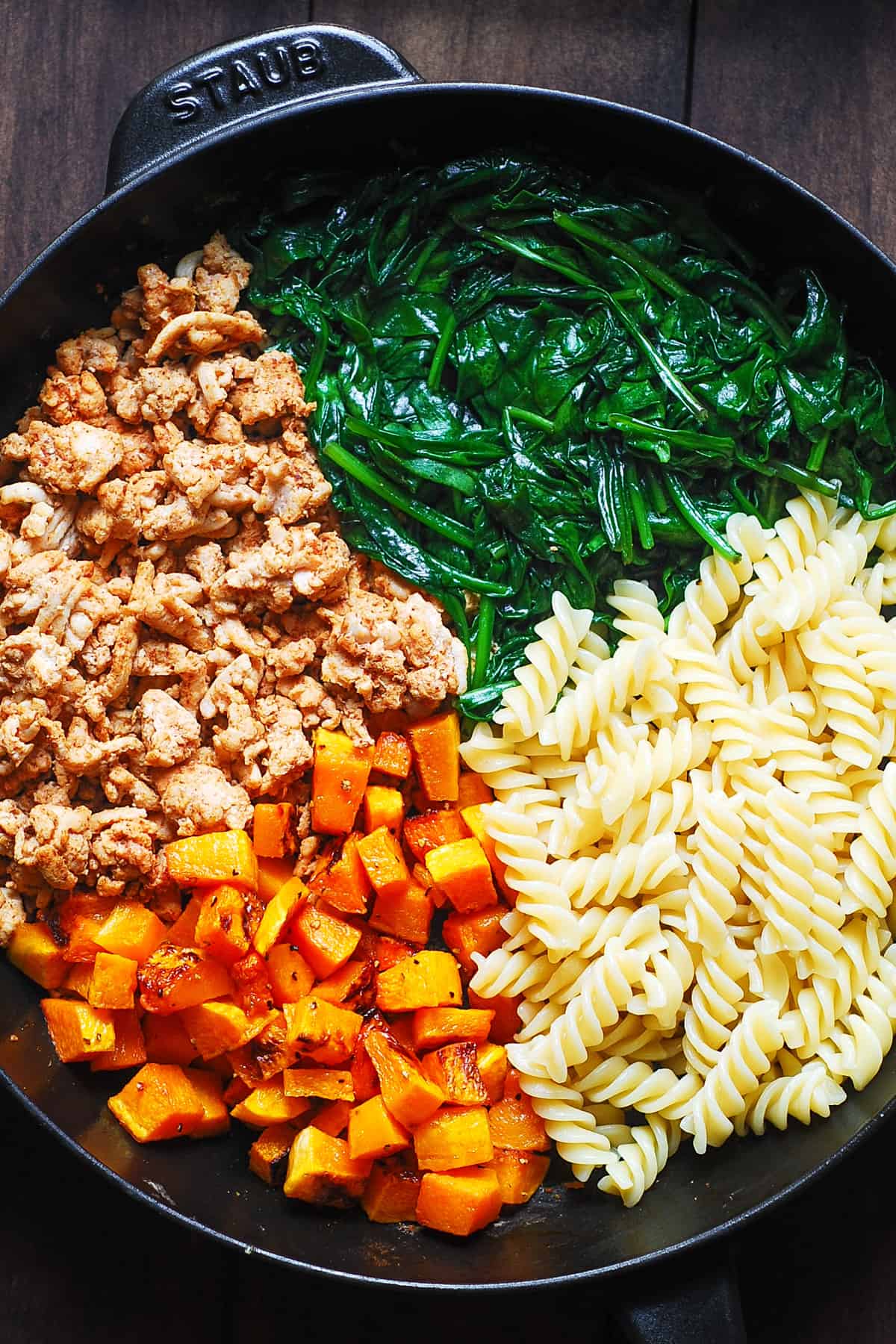 La pasta cremosa con tacchino macinato con zucca e spinaci è una cena deliziosa che piacerà a tutta la famiglia! Se stai cercando la ricetta del tacchino macinato, non cercare oltre questo piatto gustoso, colorato e vivace!