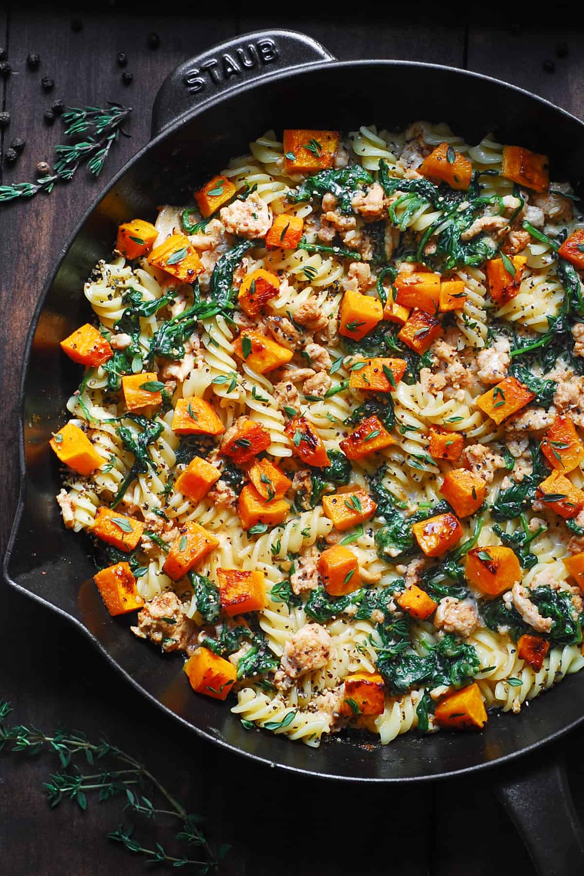- Cibo di conforto. Questa pasta è un delizioso comfort food fatto con carne più magra rispetto all’utilizzo di salsiccia o carne macinata. In effetti, questa pasta è stata totalmente ispirata alla mia pasta con zucca e salsiccia.