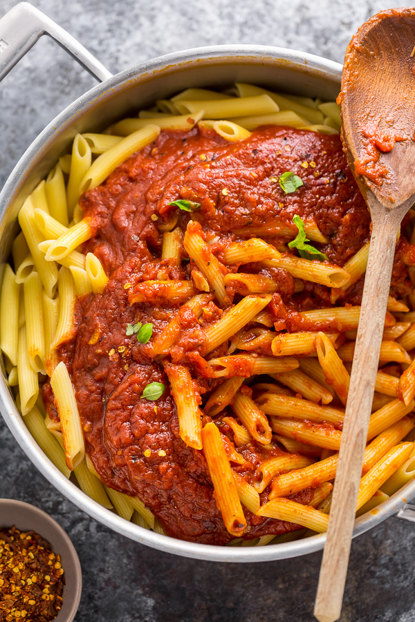 Piccante, impertinente e così facile…questa ricetta di penne è il pacchetto completo! Quindi la prossima volta che hai voglia di pasta, salta il lussuoso ristorante italiano (o la consegna) e prepara invece questa ricetta piccante di penne. Ti godrai il comfort food italiano di qualità da ristorante comodamente da casa tua in 30 minuti! Se sei un casalingo come me…non c’è niente di meglio di così!