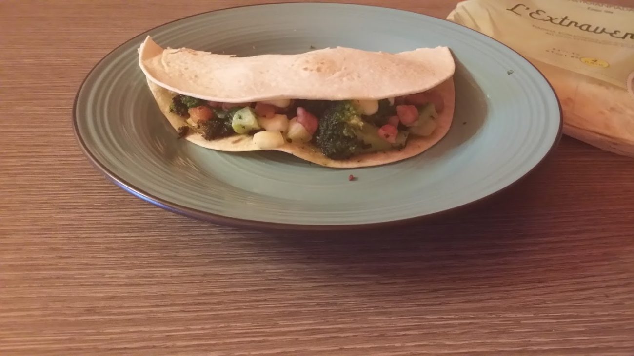 La piadina con broccoli e pancetta è gustosissima, ed è velocissima da preparare sia per cena che per pranzo o per una serata tra amici.