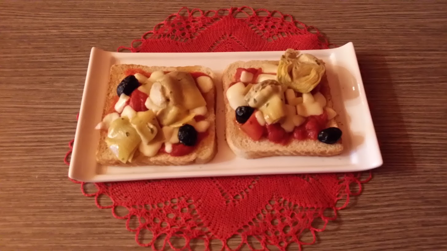 Accendete il forno a 200°. In una terrina versate della polpa di pomodoro. Aggiungete alla polpa di pomodoro il sale e l’origano e l’olio. Adagiate le fette di pancarrè su una teglia da forno e conditele con la polpa condita, poi spezzettate una mozzarella con le mani strizzandola bene in modo che perda gran parte dell’acqua. Sistemate la mozzarella sopra le pizzette di pancarrè, poi spolveratele con l’origano, i carciofini sott’olio e le olive nere. Quando il forno avrà raggiunto i 200° infornate per il tempo necessario affinché le pizzette diventino croccanti e friabili. Sfornate e gustatele.