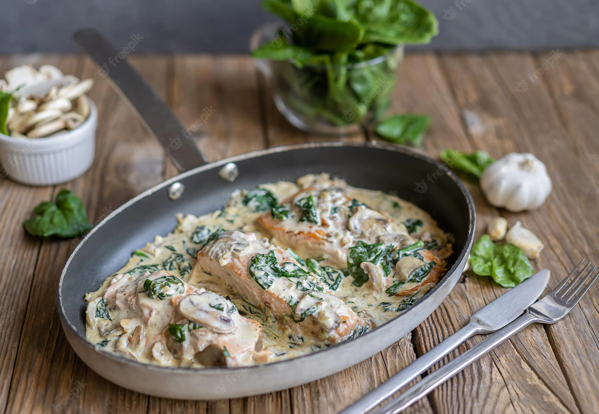 Preparare una deliziosa crema di pollo, funghi e spinaci è facile e costituisce un pasto completo e veloce, poiché questa carne, funghi e verdure è un’importante fonte di nutrienti come proteine, lipidi, vitamina 3 e minerali come calcio, ferro e zinco, tra gli altri. Basta disossare il pollo e tagliarlo a pezzi se non si trovano confezioni già pronte, quindi mettere a cuocere il vino bianco, un ottimo modo per togliere il fondo, raccogliendo i sapori e i pezzi dorati del pollo. Se non avete il vino bianco, potete sostituirlo con del vermouth secco o utilizzare del brodo di pollo e aggiungere una quantità di succo di limone fresco per ravvivarlo. La panna è una buona opzione per addensare la salsa ed evitare un composto acquoso, dando un tocco di sapore squisito.