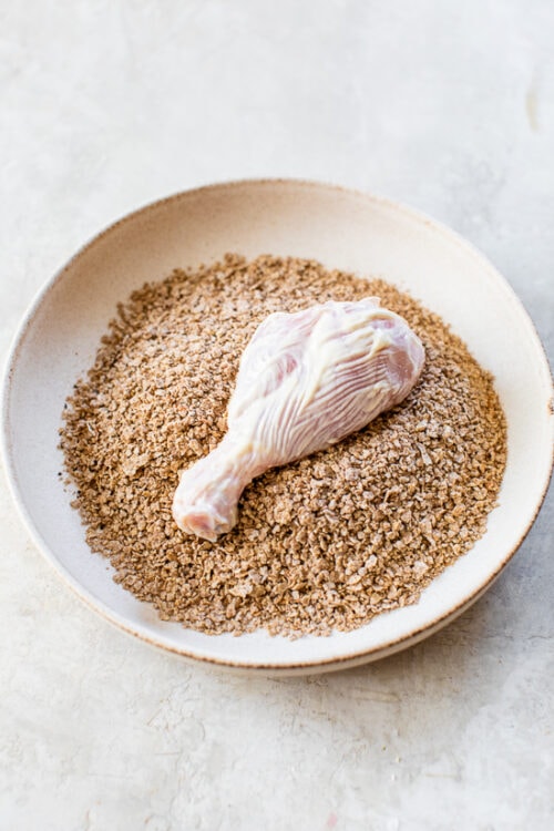 - Senza glutine – Per rendere questo pollo “fritto” senza glutine, sotto i fiocchi di crusca per Chex di riso o panko senza glutine.