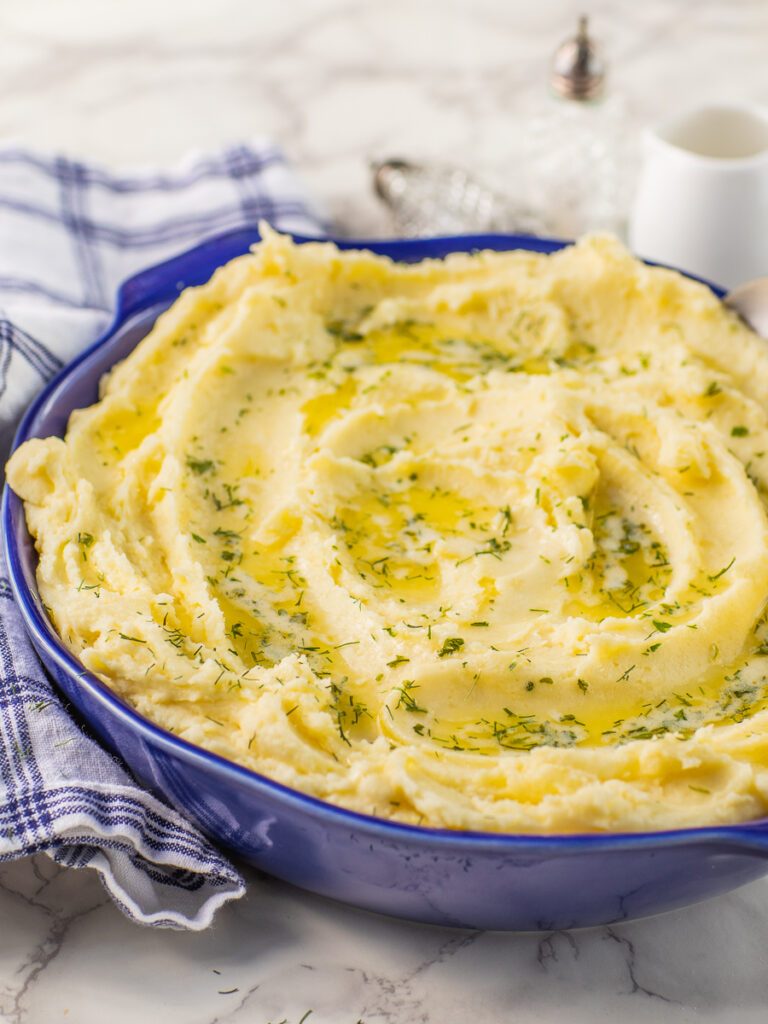 - Continuare a schiacciare le patate e ad aggiungere altra panna se necessario, fino a quando le patate non saranno cremose e lisce. Condire con sale a piacere.
