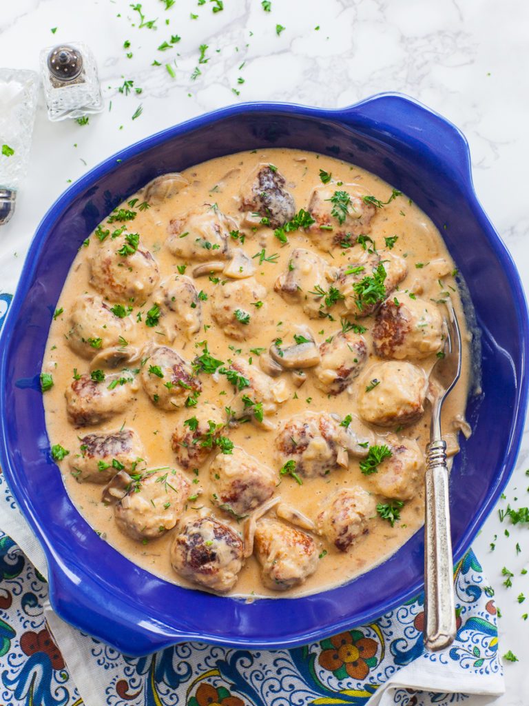 La ricetta delle polpette più succose e gustose di sempre! Le mie polpette di tacchino con salsa cremosa di funghi sono destinate a diventare le preferite di tutta la famiglia! Le polpette vengono condite con cipolla grattugiata per una maggiore umidità e aneto e prezzemolo freschi. Questa ricetta per la cena in una padella è così facile da preparare e può essere preparata con pollo, maiale o persino manzo. Goditi queste succose polpette con purè di patate, pasta o tagliatelle! Dai un’occhiata alla mia ricetta per il purè di patate al burro cremoso: il complemento perfetto per questo piatto!