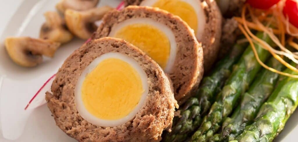 - Questo polpettone all’uovo si accompagna perfettamente con patate arrosto e pomodori.