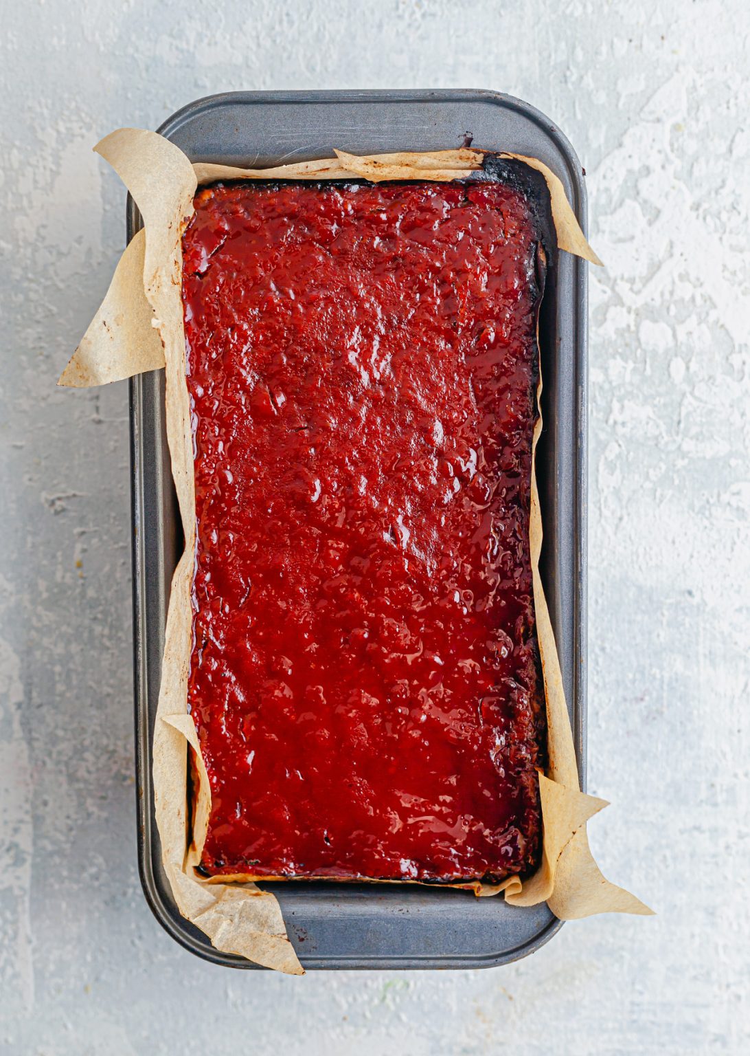 - In una ciotola a parte unire il ketchup con l’aceto balsamico e stenderlo sopra il polpettone. Infornare per 25-35 minuti.