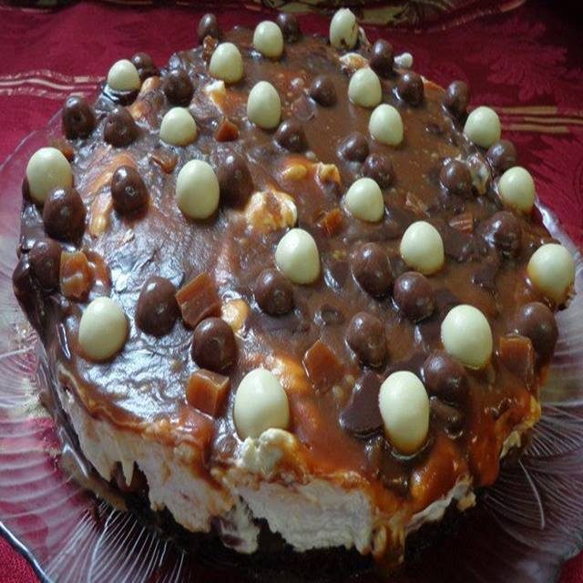 Misture todos os ingredientes e amasse até soltar das mãos, se precisar pode ir colocando um pouco mais de trigo aos poucos. Espalhe a massa de forma uniforme no fundo da forma circular de 20 ou 30 cm, com fundo removível. Leve para assar em forno pré-aquecido (150°C), por 20 minutos, ou até ficar dourada. Reserve, deixe esfriar e desenforme depois de fria. Hora da cobertura. Despeje tudo no liquidificador e bata somente para misturar os ingredientes. Coloque a cobertura sobre a torta e leve para gelar por 4 horas.