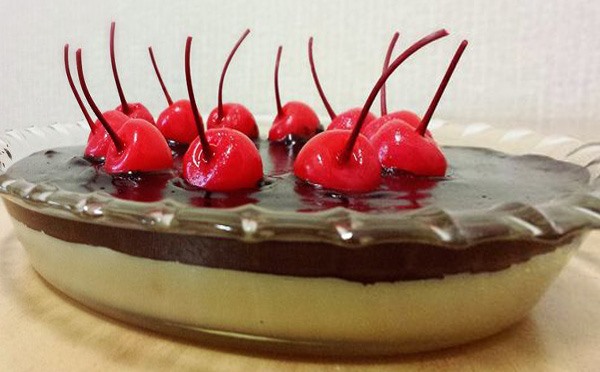 Adicione ao chocolate derretido 1 lata de creme de leite sem soro. Despeje esse creme preto sobre a camada de uvas. Leve à geladeira por cerca de 3 horas. Deixe na geladeira até a hora de servir a ceia de natal.