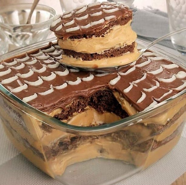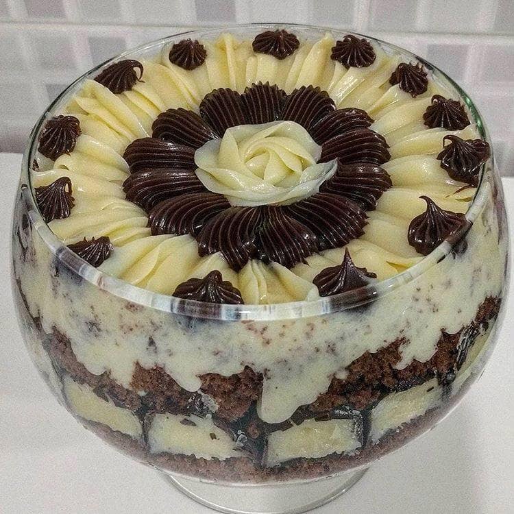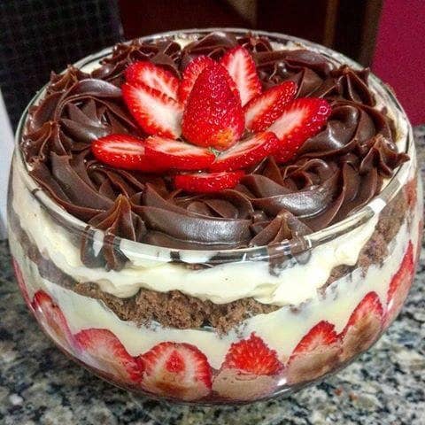 - Bolo de Chocolate (tradicional) quando estiver frio cortar ao meio se preferir pode esfarelar