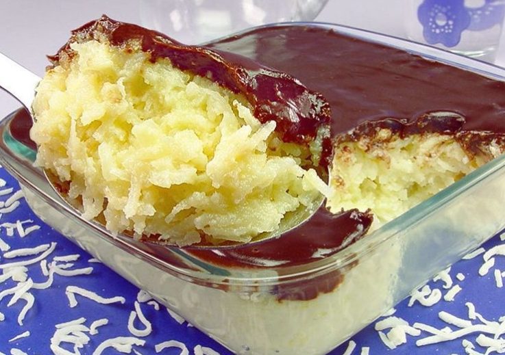 Bolo de chocolate cremoso, recheio de coco e cobertura de brigadeiro