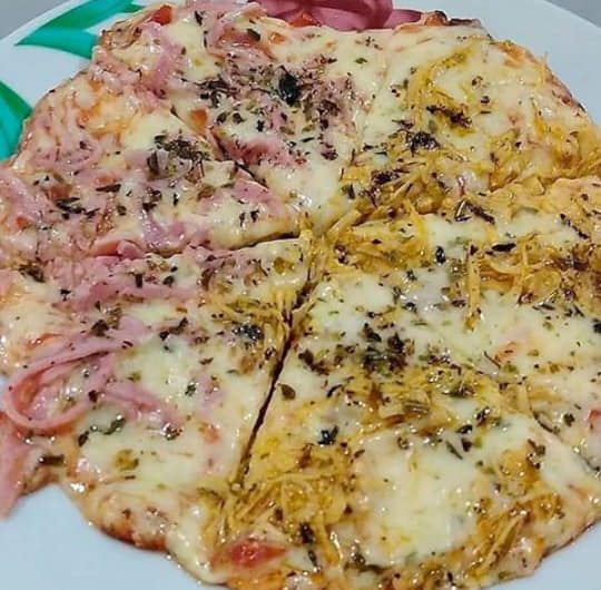 Misture tudo em uma travessa com as mãos. Caso não encontre o ponto certo, adicione mais farinha até desgrudar a massa das mãos. Separar 3 bolinhas de massa Abra-as separadamente na frigideira (na frigideira mesmo vá abrindo em formato da fritadeira). Em fogo baixo Asse somente um lado até o ponto desejado ou até dourar Vire a massa Desligue o fogo. O recheio eu coloquei primeiro o requeijão, molho de tomate, mussarela, rodelas de tomate e orégano Asse agora o outro lado (fogo baixo) Tampe para que o queijo derreta. Para o queijo derreter rápido sem queimar sua massa em baixo, com uma colher de sopa com água jogue nas laterais da frigideira e cubra com a tampa, vai fazendo isso até você vê que derreteu o queijo. Não leva fermento Não precisa levar a massa pra descansar.