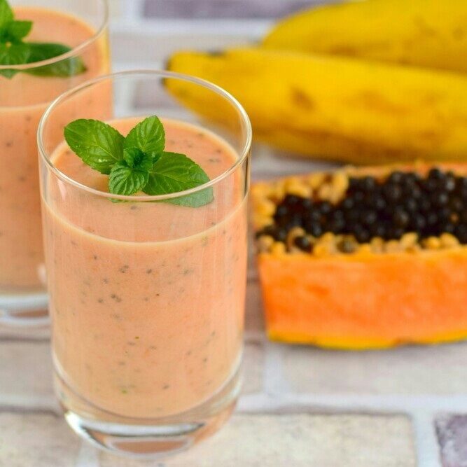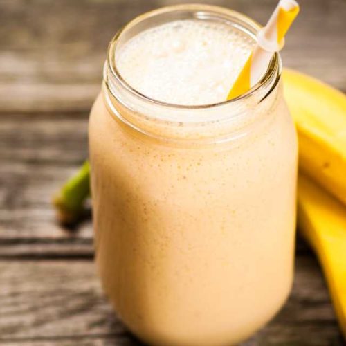 Bata tudo no liquidificador. Caso queira uma bebida mais refrescante, congele a banana antes de preparar a receita.