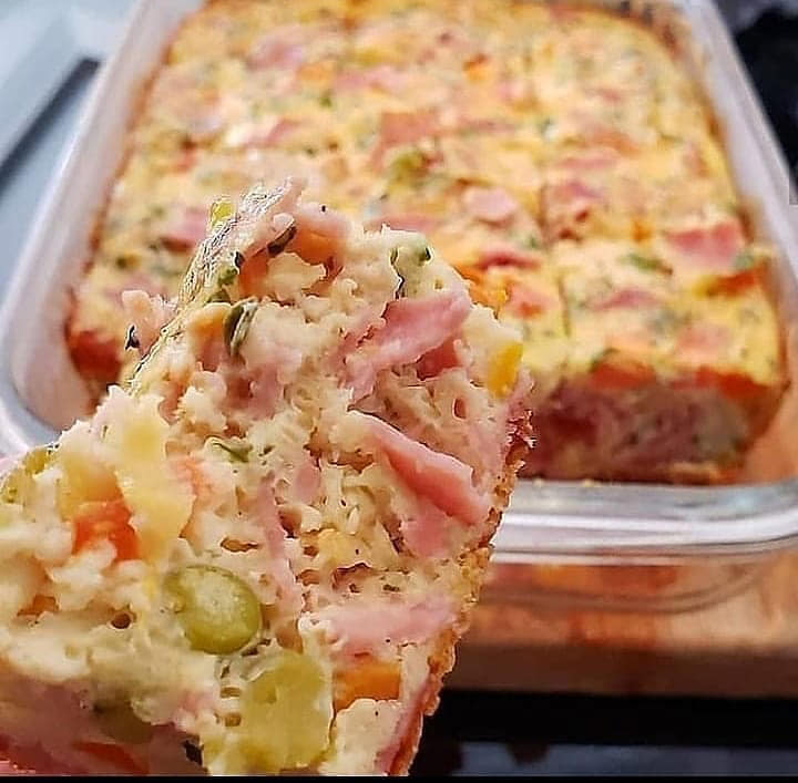 Numa vasilha coloque todos os ingredientes e misture muito bem. Só misturar mesmo tá gente? Não precisa bater primeiro o ovo nem nada. Depois de tudo misturado, despeje em uma forma untada e enfarinhada e leve ao forno em temperatura de 180 graus por mais ou menos uns 30 minutinhos. Ou até que a omelete esteja completamente assada. O tempo pode variar de forno para forno.
