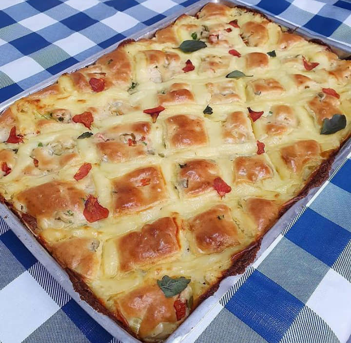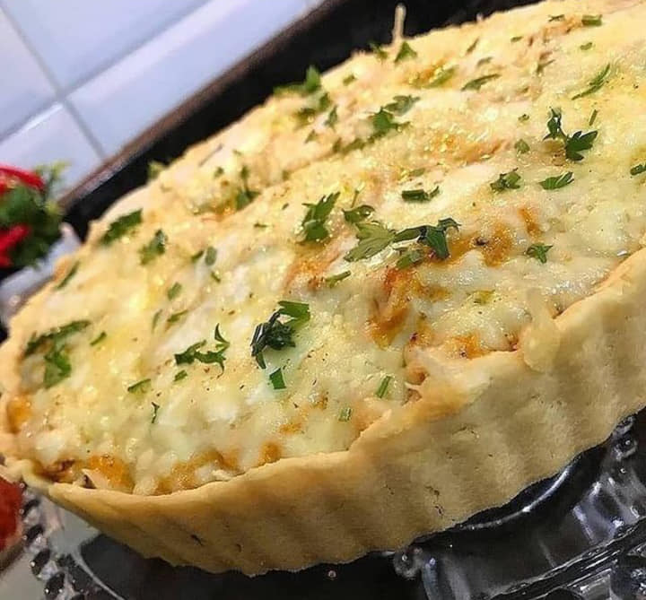 Amassar tudo com a mão até formar uma massa lisa, envolver no plástico filme e levar para geladeira por uns 20 minutos, enquanto isso faz o recheio. O recheio refoguei frango cozido e desfiado com alho, cebola, azeite, páprica defumada, chimichurri, alho poró e polpa de tomate. Depois misturei 1/2 caixinha de creme de leite, 1 potinho de creme de ricota e azeitonas picadas, fica uma delícia se acrescentar palmito tbm. Retirei a massa da geladeira, forrei uma forma de fundo removível; não precisa untar, fiz uns furinhos com o garfo e levei a massa para assar em forno pré aquecido à 210° por uns 20 a 30 minutos. Coloquei o recheio, colheradas de requeijão, parmesão e levei ao forno mais uns 20 minutos.