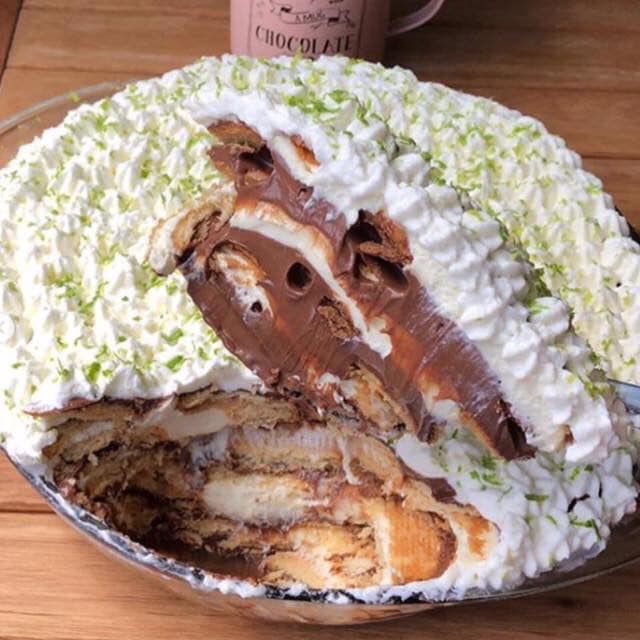 - 2 latas de leite condensado + 1/2 xícara de limão espremido (suco) + 200 ml de creme de leite