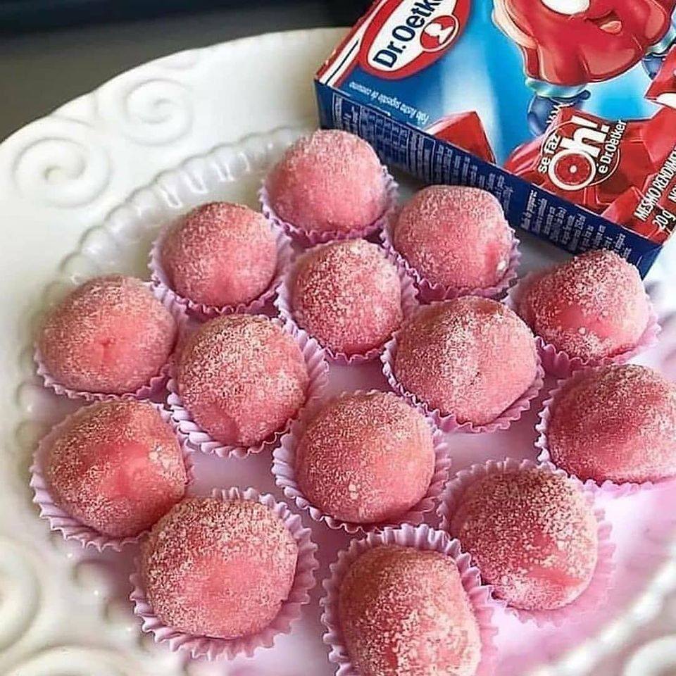 Leve todos ingredientes ao fogo, exceto a geladinha. Mexa até engrossar e junte a gelatina. Espere até alcançar o ponto de desgrudar do fundo da panela e espere esfriar para enrolar. Passe no açúcar cristal ou refinado.