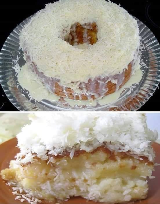 Coloque em forma untada e enfarinhada. Asse em forno médio, preaquecido, por cerca de 40 minutos, ou até dourar. Para cobertura: Misture tudo (não precisa levar ao fogo), coloque sobre o bolo ainda quente e polvilhe coco ralado. Leve para gelar!