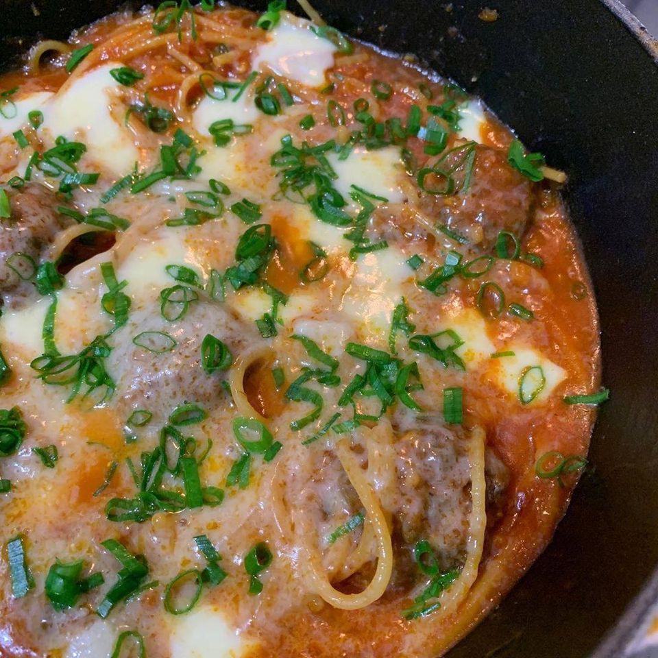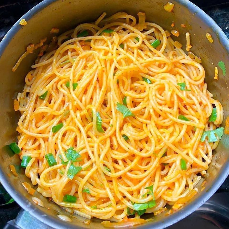 Numa panela refogue cebola, alho e pimenta de cheiro com um pouco de azeite. Já bem refogadinho coloque o molho de tomate e acrescente um pouquinho de açúcar pra tirar a acidez. Coloque sal e deixe ferver. Pode colocar um pouco de água tbm.. assim irá ferver e engrossar novamente. Acrescente as almôndegas (CRUAS) no molho e deixe ferver no fogo bem baixinho. Eu temperei a carne com alho, cebola e sal e recheei com queijo. Depois de uns 6 min com a carne cozinhando, coloque o espaguete e quebre ele ao meio pra caber tudo na panela. Dê uma misturada, coloque mais um pouco de água e tampe deixando ferver. Não tem tempo certo, vc vai abrindo e mexendo.. quando vc ver que está cozido, ótimo! Só desligar e finalizar com salsinha e queijo! A água vc pode ir acrescentando conforme for precisando! Sem medo! Prontinho! Ele é bem rápido! Faça as bolinhas menores, assim cozinham super rápido viu?!